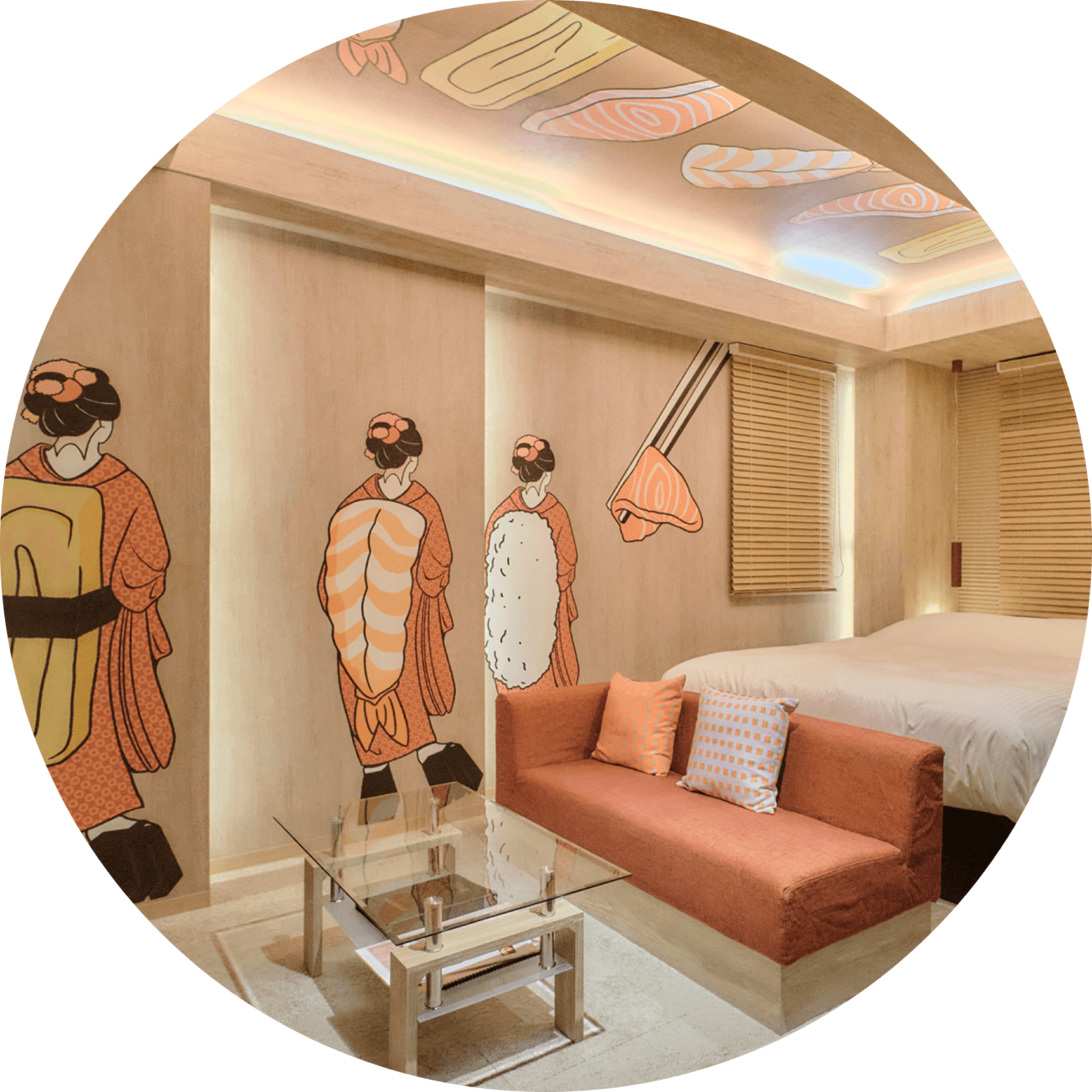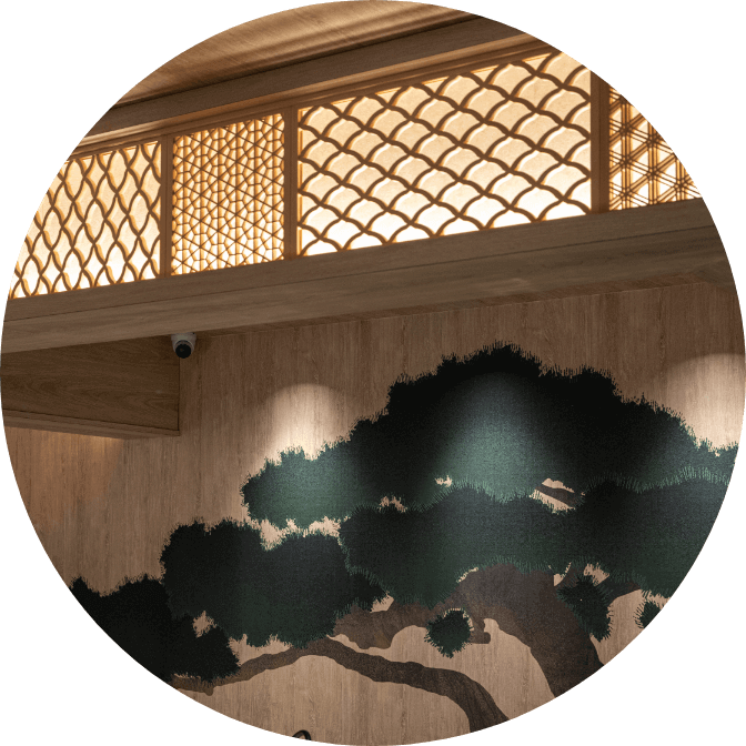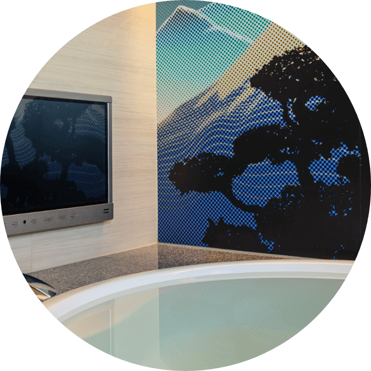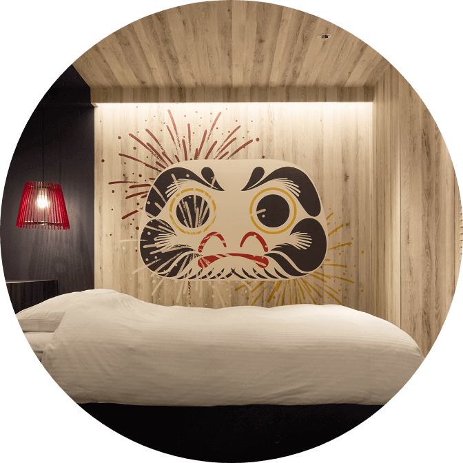 日本らしいモチーフを使ったグラフィックアートが空間に彩りを添え、ふと目を引く、遊び心ある仕掛けがあちこちに散りばめられています。