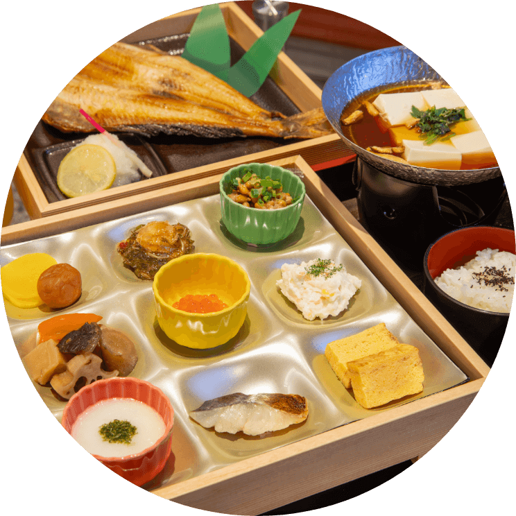 和食、洋食、中華など豊富なメニューをご用意。名古屋ならではのご当地グルメや、旬を感じる期間限定メニューもお楽しみいただけます。
