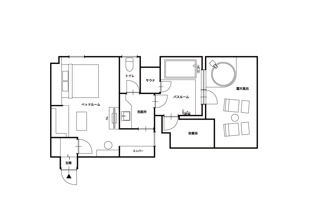 客室の内風呂でも、美容と健康に良い「ラドン」と「ゲルマニウム」の人工温泉をお楽しみいただけます。浴室のデザインも客室ごとに趣が異なり、空間ごと味わえるバスタイムに。サウナ後の水風呂としてもご利用でき、ご希望に応じて氷を加えて温度を下げることも可能です。