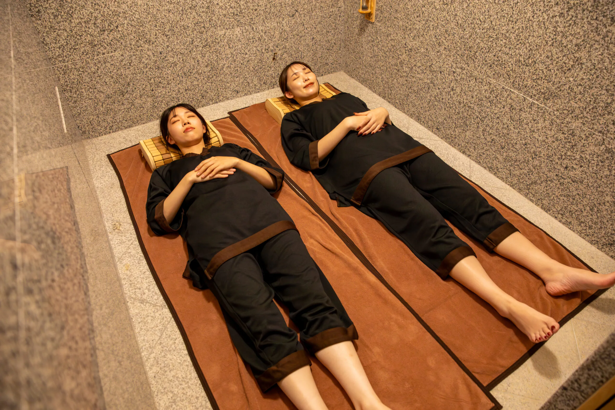 2人で楽しめる個室岩盤浴は、客室ごとに異なる天然鉱石を使用。301号室の「爽床石(そうしょうせき)」は、高い遠赤外線とマイナスイオンで発汗を促し、代謝・免疫力を高める効果があります。