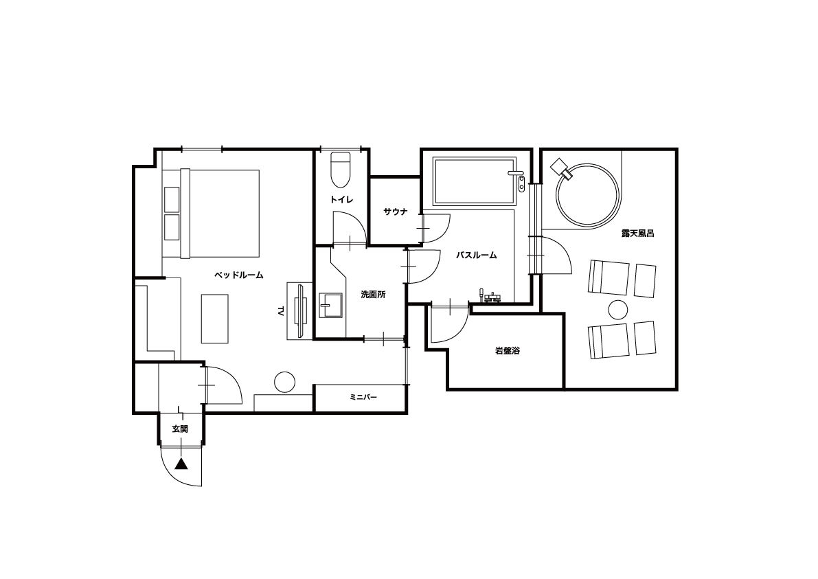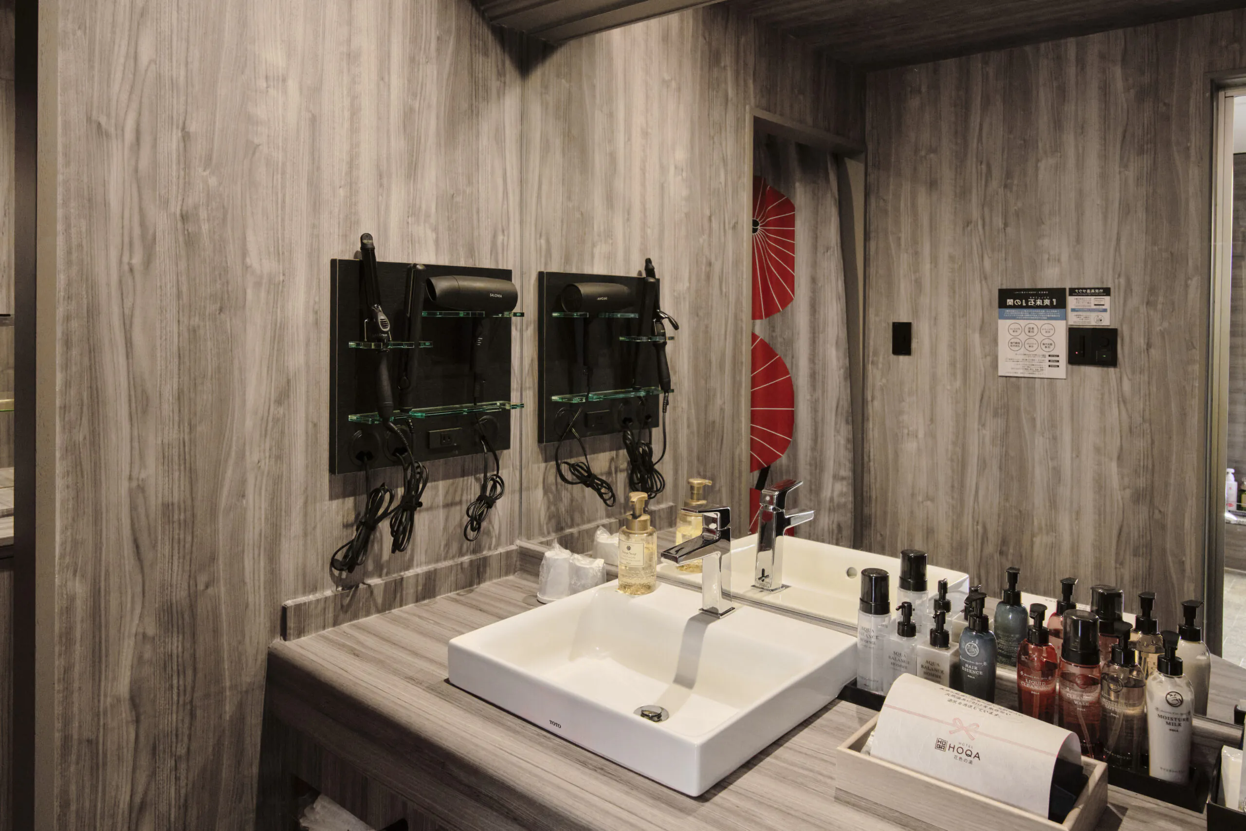 客室の内風呂でも、美容と健康に良い「ラドン」と「ゲルマニウム」の人工温泉をお楽しみいただけます。浴室のデザインも客室ごとに趣が異なり、空間ごと味わえるバスタイムに。サウナ後の水風呂としてもご利用でき、ご希望に応じて氷を加えて温度を下げることも可能です。