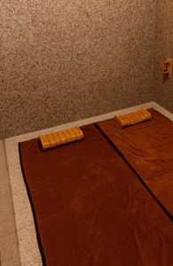 2人で楽しめる個室岩盤浴は、客室ごとに異なる天然鉱石を使用。305号室の「ブラックシリカ」は、強力な脱臭・防菌と多量のマイナスイオンで、室内を浄化し発汗を促す効果があります。
