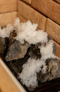 サウナストーンにかけるのは、水ではなく“かき氷”。ゆっくり溶けるので高温が長く続き、白樺のウッドアロマで心地よい空間に。汗を流して、澄みわたるひとときを。
